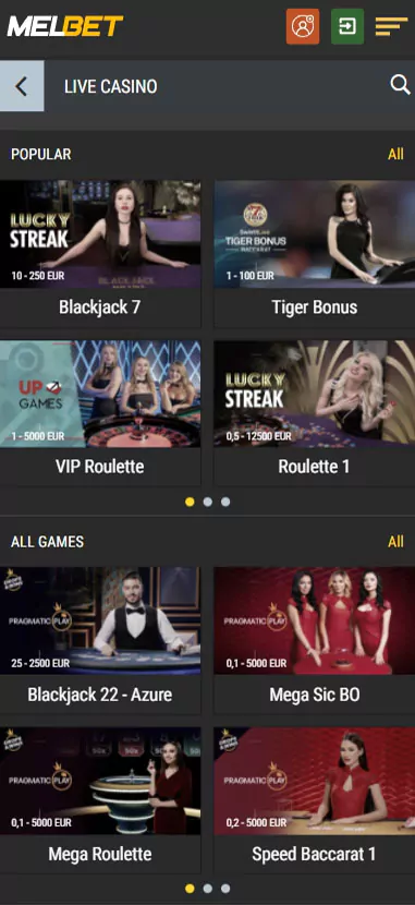 Melbet App Screenshots