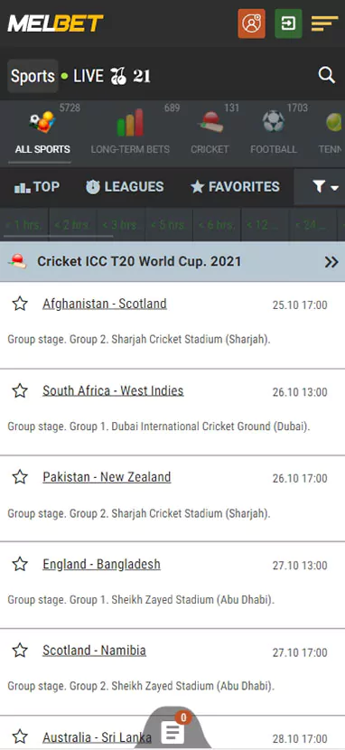 Android and iOS app is software with low system requirements that is compatible with all up-to-date devices. Melbet app has an intuitive interface, high speed, and a wide range of options. It is designed for betting on pre-match and live events, tracking game results, depositing and withdrawing money, watching live streaming of football, cricket, tennis matches, etc.